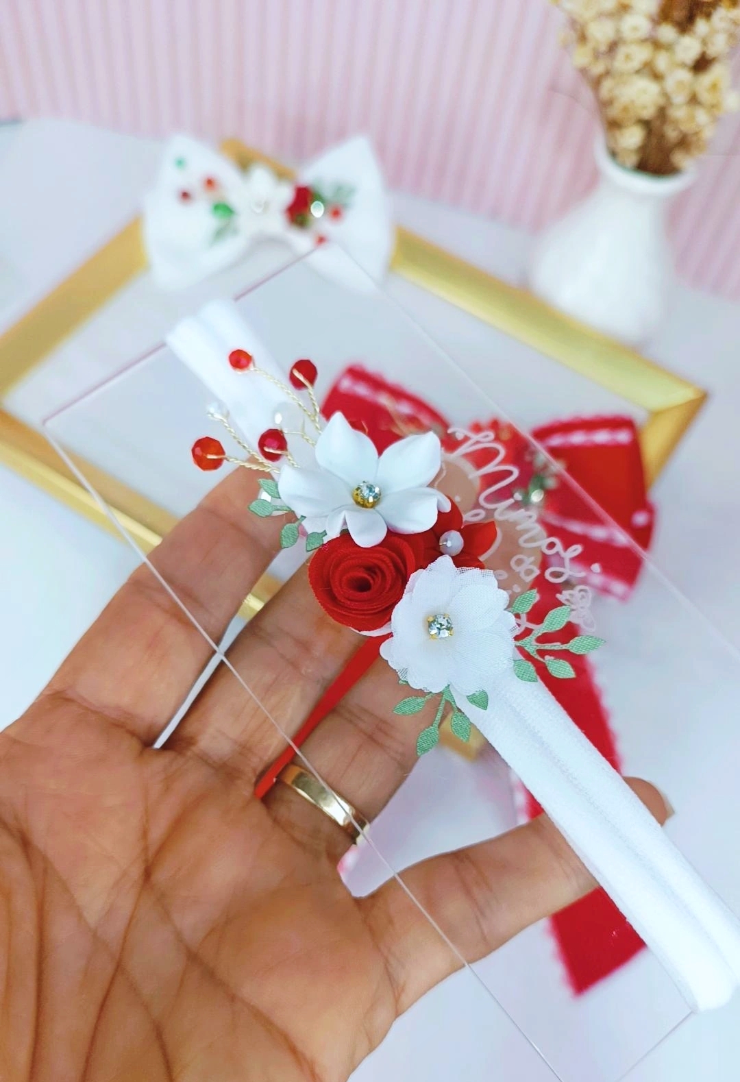 Essa faixinha é ideal para ocasiões especiais como, casamento, batizado, aniversário, ensaio newborn, peça linda e delicada, feita a mão com materiais de alta qualidade.